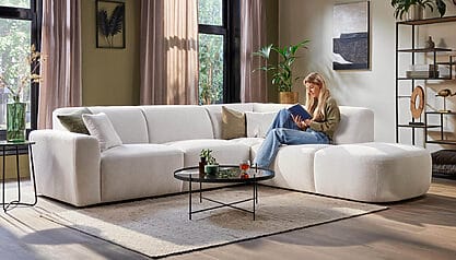 De nieuwe Nora Hoekbank nodigt u uit om te ontspannen. Het laagliggende model geeft een elegant zwev...