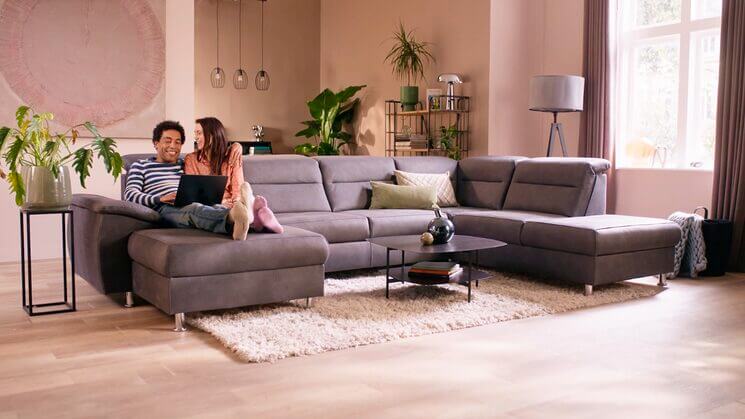 Dit hoeksalon is een droom voor elke living. Eigentijdse uitstraling, in verschillende kleuren Fabric Selecta.