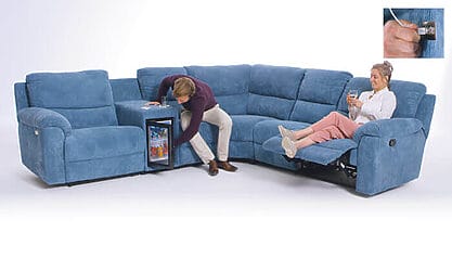 Magnifique salon de coin que vous pouvez entièrement adpater à vos souhaits. Possibilité d’ajout d’une console centrale avec réfrigérateur mini-bar et mécanisme relax intégré. Disponible en différents habillages et coloris. Est-ce que l'idée de devoir vous lever pour aller chercher un verre en regardant votre série ou votre film préféré vous embête aussi ? Pas de panique, Seats and Sofas a la solution ! Notre Megacouch : un canapé d'angle confortable avec un réfrigérateur intégré en option ! Ce canapé avec réfrigérateur est parfait pour les soirées cinéma ou pour se détendre après une journée bien remplie. Ce canapé d'angle est équipé d'un port USB, d'éléments de relaxation et d'un réfrigérateur. Grâce au port USB, vous pouvez charger votre téléphone ou votre tablette tout en étant assis ou en vous relaxant. Pour plus de confort, surélevez vos jambes grâce à la fonction de relaxation. Le réfrigérateur vous évite de vous lever pendant une bonne soirée sur le canapé. Vous pouvez assembler ce canapé d'angle selon vos souhaits avec des éléments de détente, un réfrigérateur et un port USB. Vous pouvez également choisir parmi différents types de revêtement et de couleurs.
