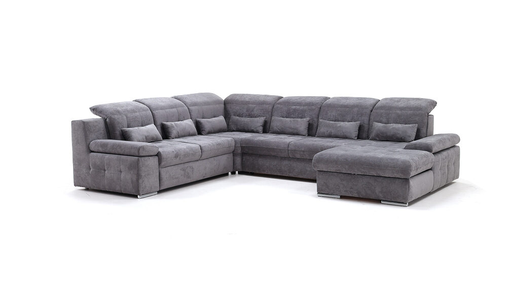 Le canapé U Dubai est un modèle à la fois magnifique, spacieux et pratique. Ce canapé au design unique, aux finitions soignées et élégantes, convient à toute la famille. Outre sa belle apparence, le Dubai est également pratique. Il est possible d'étendre le canapé U avec une fonction lit pour dormir ou se détendre. Une fonction de rangement est également possible dans l'îlot (chaise longue). On peut y ranger des coussins, des plaids et des couvertures pour des moments de détente. Il est également possible de régler la hauteur de l'accoudoir. Ceci permet de l'utiliser comme appui-tête en position allongée ou comme dossier en position allongée. Les appuie-tête peuvent également être réglés pour offrir le confort souhaité pour le dos et la nuque. Le Dubai est disponible dans différentes configurations, matières et coloris. Notre personnel de vente se fera un plaisir de vous conseiller au mieux dans l'un de nos Mégastores.